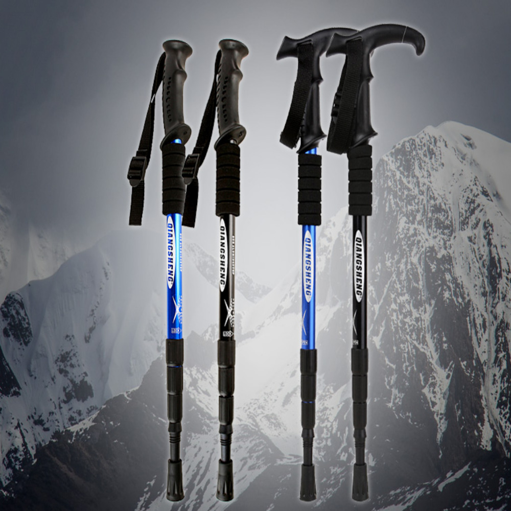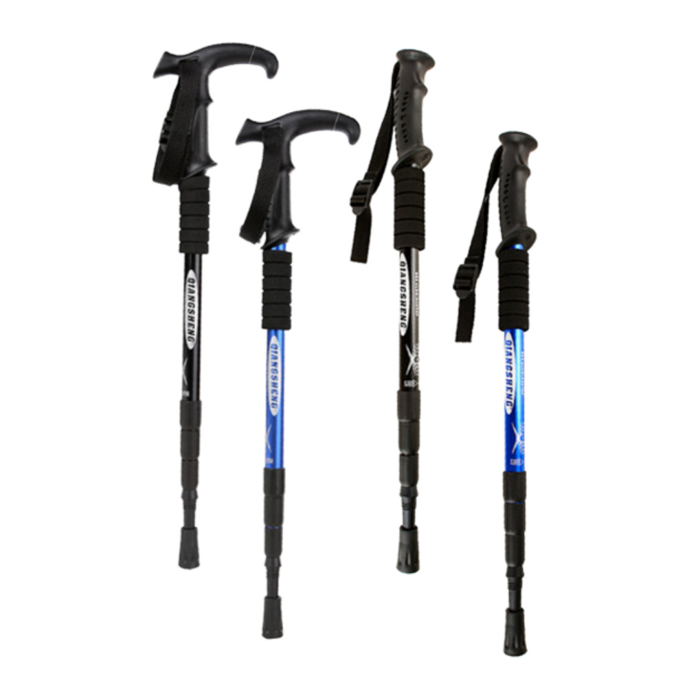 T자형은 손목걸이가 달려 있어 장시간 산행 시 손의 피로를 줄이고, 손아귀 힘이 약한 사용자에게 안정감을 준다.